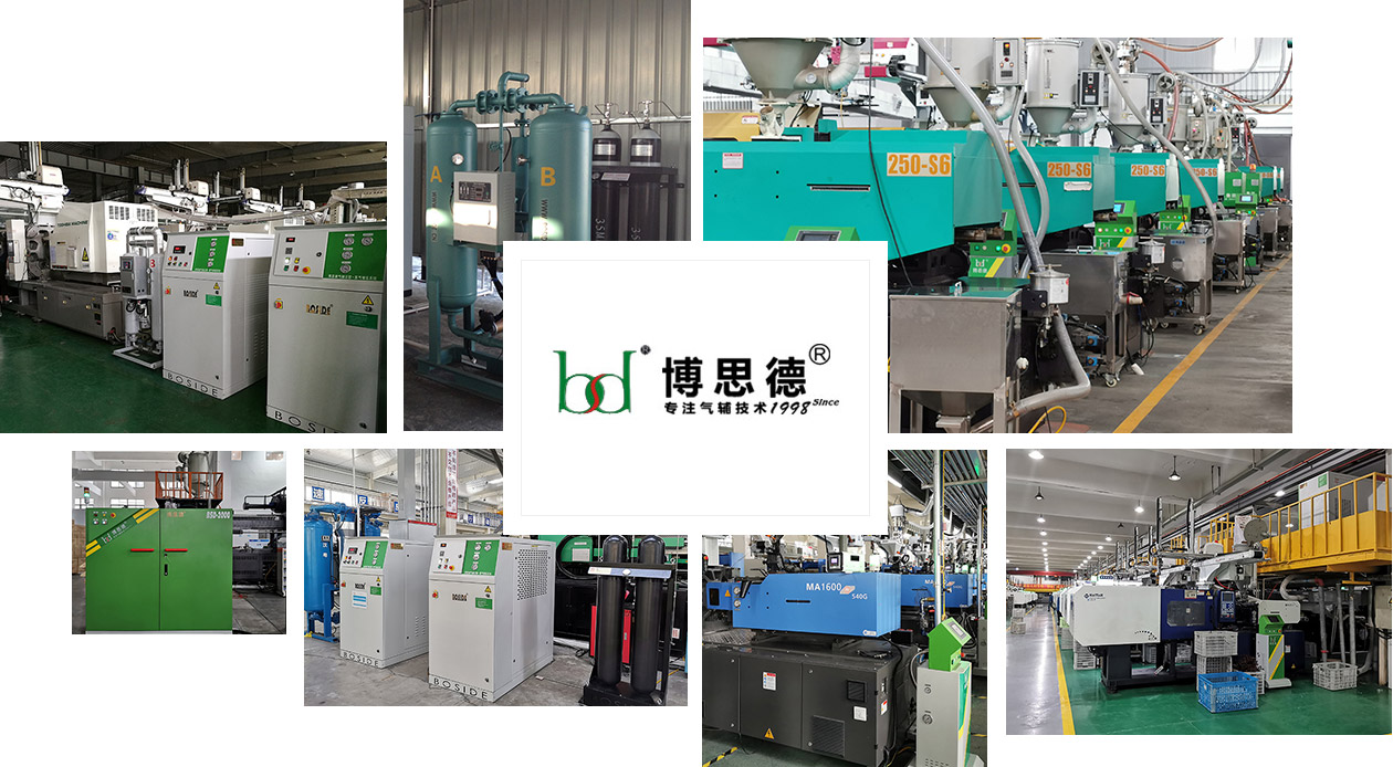 浙江博思德( BOSIDE) 機械有限公司 是專業從事氮氣輔助注塑成型設備的生產、銷售;氣注塑工藝及氣模具的研發、應用;高壓氣體設備的生產、銷售及國外品牌代理等業務。主要經營:氮氣發生器、高壓壓縮機、氮氣控制系統、氮氣模具制造、注塑成型生產等五大事業項目。我們有近二十年的氮氣輔助注塑成型(氣體輔助注塑成型)的生產及技術經驗。